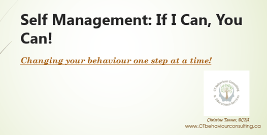 If interested there will be an opportunity for a follow-up component – if you would be interested in the follow up component please email Christine at CTbehaviourconsulting@gmail.com and discuss when you would like to begin your self-management program. Three phone calls (15-20mins) per call will be provided over the 6-week period to discuss progress; make changes where needed and any other support you may need. This follow-up will cost an additional $25.